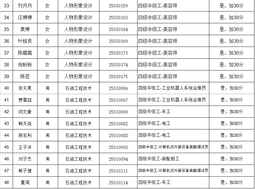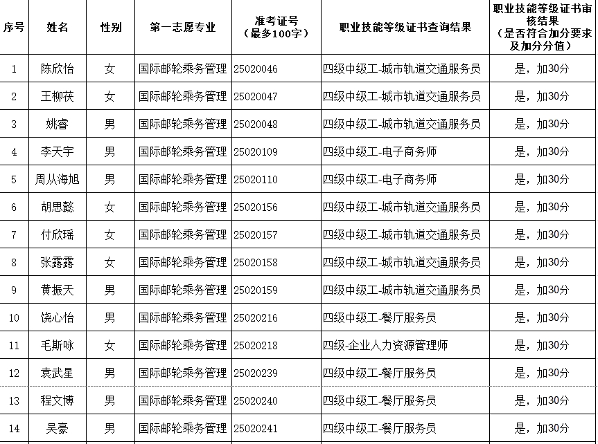 经审核,2025年高职单招申请职业技能测试部分加分并符合加分规定考生共有48名,现对48名考生加分信息进行公示。